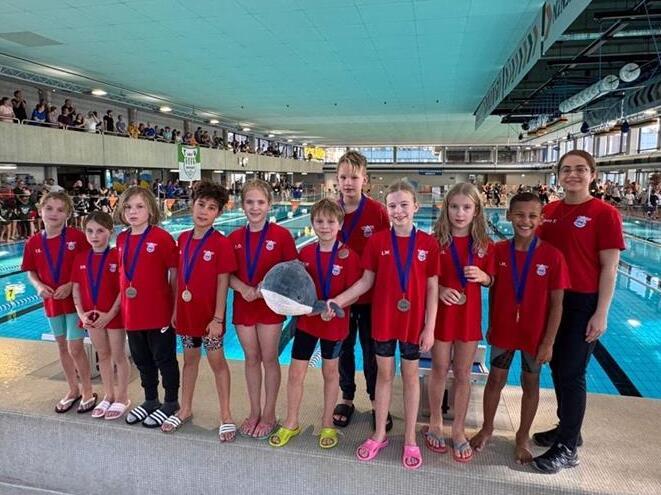 Unsere jüngsten Schwimmerinnen und Schwimmer der Jahrgänge 2016 und 2018 haben am Wochenende beim 4. Durchgang des Kids Cup (Bezirksfinale) in Neuss mit großem Einsatz gekämpft. Mit einer starken Leistung erreichte das Team den 4. Platz – und sicherte sich damit die Qualifikation für das NRW-Finale in zwei Wochen!