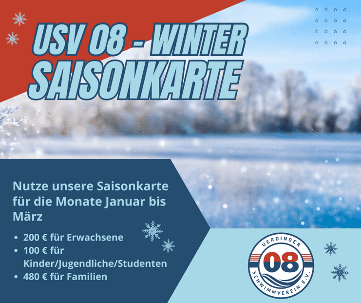 Neben der ganzjährigen Mitgliedschaft bietet der Uerdinger Schwimmverein 08 e.V. auch einen Saisonkarte an. Mit diesem ist es für den Zeitraum Januar bis März 2026 möglich, die Vereinsanlage zu nutzen.