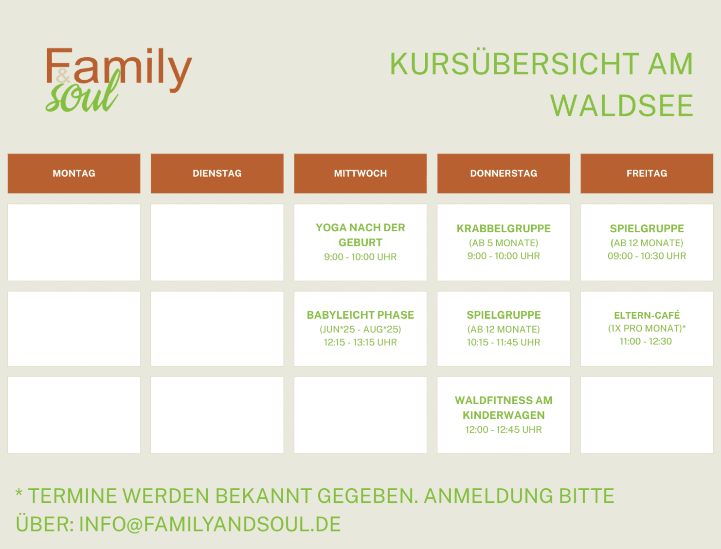Bei freien Kapazitäten ist eine Probestunde jederzeit möglich. Bitte über info@familyandsoul.de anfragen.