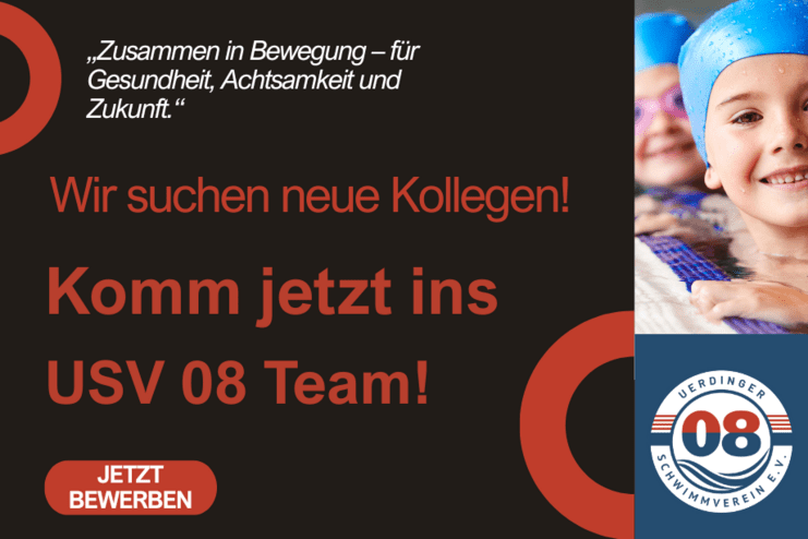 Schreibe uns gerne, warum wir genau Dich als Schwimmlehrer*in brauchen, an personal@usv-08.de. Wir freuen uns auf Deine Bewerbung!