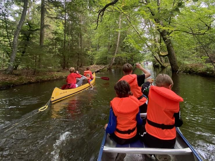 Weitere Programmhighlights waren unter anderem der Ausflug zum Kletterpark Silkeborg, die Kanutour auf dem Gudenå – Dänemarks längster Fluss – und der Ausflug ins AQUA. Beim Klettern ging es hoch hinaus in die Baumwipfel – die Mutigsten der Gruppe haben sich bis auf die höchsten und schwersten Parcours getraut und diese mit einem spektakulären Sprung aus über 20m Höhe beendet. Aber auch für die Kleinsten war reichlich geboten und sie konnten zum Teil ihre ersten Klettererfahrungen im Hochseilgarten sammeln.