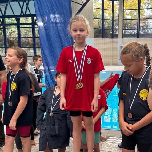 Am 12. Oktober 2025 fand in Köln das TPSK Kinder-Schwimmfest statt. Insgesamt 23 junge Schwimmer*innen aus dem D-Kader und den Hai Talents gingen an den Start und absolvierten 101 Starts. Mit großem Einsatz konnten die Kinder beeindruckende 45 Medaillen mit nach Hause nehmen.