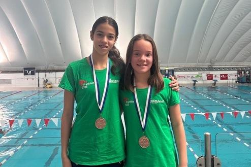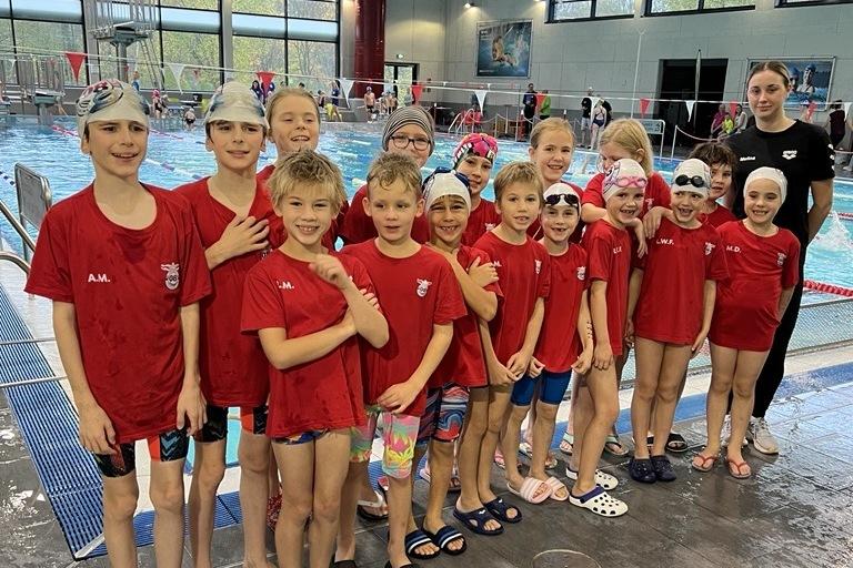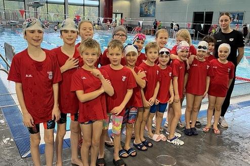 Auch unsere Trainer Marc Bell und Melina Schwindt gingen selbst ins Wasser. Das Ergebnis: Viele neue Bestzeiten und zahlreiche Medaillen – ein rundum gelungener Wettkampf!