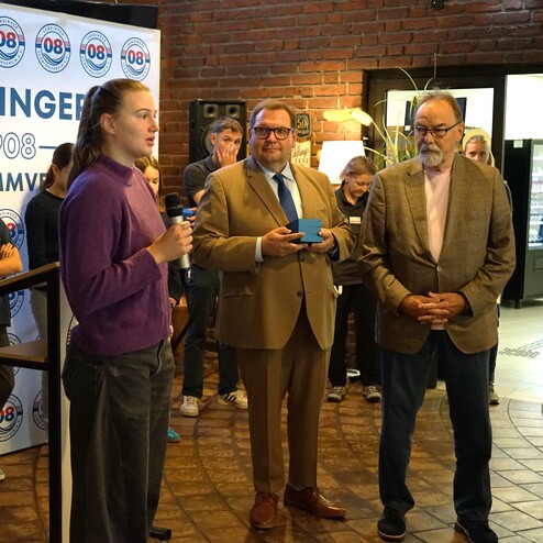 Ein weiterer Höhepunkt der Veranstaltung war die offizielle Namenseinweihung der frisch sanierten 25-m-Halle, die nun den Namen „Dr.-Wolfgang-Oberhoff-Halle“ trägt. Dr. Heinz Pudleiner würdigte gemeinsam mit Oberhoffs Sohn Jens die Verdienste in einer großartigen Rede, ehe das neue Namensschild feierlich enthüllt wurde. Wolfgang Oberhoff hatte sich über Jahrzehnte hinweg in besonderem Maße für den Uerdinger Schwimmverein 08 eingesetzt. Als langjähriger Vorsitzender und Förderer prägte er die Entwicklung des Vereins entscheidend, setzte sich unermüdlich für den Schwimmsport ein und schuf die Grundlagen, auf denen der Verein bis heute aufbauen kann.