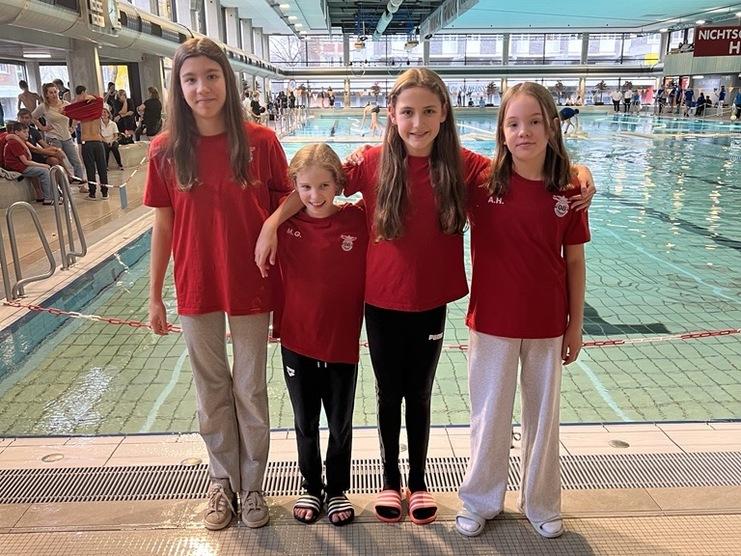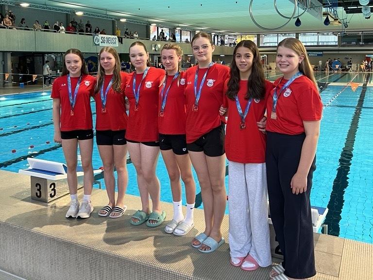 In der Altersklasse A–C weiblich (Jahrgänge 2013–2012) erreichte unser Team einen hervorragenden 3. Platz – und das mit einem hauchdünnen Rückstand von nur 0,6 Sekunden auf den zweiten Platz. Die Schwimmerinnen Valentina Basile da Costa, Cara Maria Pielsticker, Sophie Männich, Jana Kosche, Alexandra Cremers, Lilli Diefendahl und Emilie Urban überzeugten mit Teamgeist und starken Einzelleistungen.